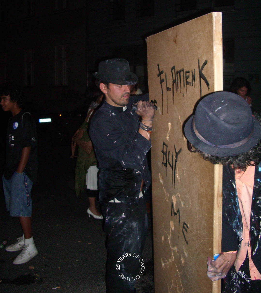 Following the battle, a live flamenco performance featuring South American musicians from the artist’s community took place in front of the gallery, further blurring the lines between exhibition, performance, and communal experience.
