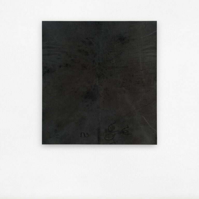 .. diese Haut war auch von der Größe her eine „Durchschnitthaut“ mit ca. 180x170cm … oder 170x160cm … sie ist nur so klein, weil ich sie sehr oft mit Säure und Hitze bearbeitet habe … durch diese beiden Vorgehensweisen zieht sich die Haut zusammen und wird klein ….bei ihr habe ich darunter noch eine Haut gelegt… eine Unterhaut …. Fontana hat bei seinen „Schlitzen“ auch einen Stoff darunter gelegt … ich wollte, dass die Löcher nicht weiß hervorblitzen/oder der Keilrahmen sichtbar wird…. und dass die Arbeit nicht durch den Untergrund gestört wird …. die Löcher entstehen, wenn ich die Säure zu lange auf einer Stelle lasse …. diese Arbeit ist auch intensiver „aufgebrochen“/verletzt/verändert wie die „Zwei in Rosa“ … das entsteht dadurch, dass ich die Säure nicht gleich neutralisiert habe, sondern sie einige Wochen/Monate darauf gelassen habe …