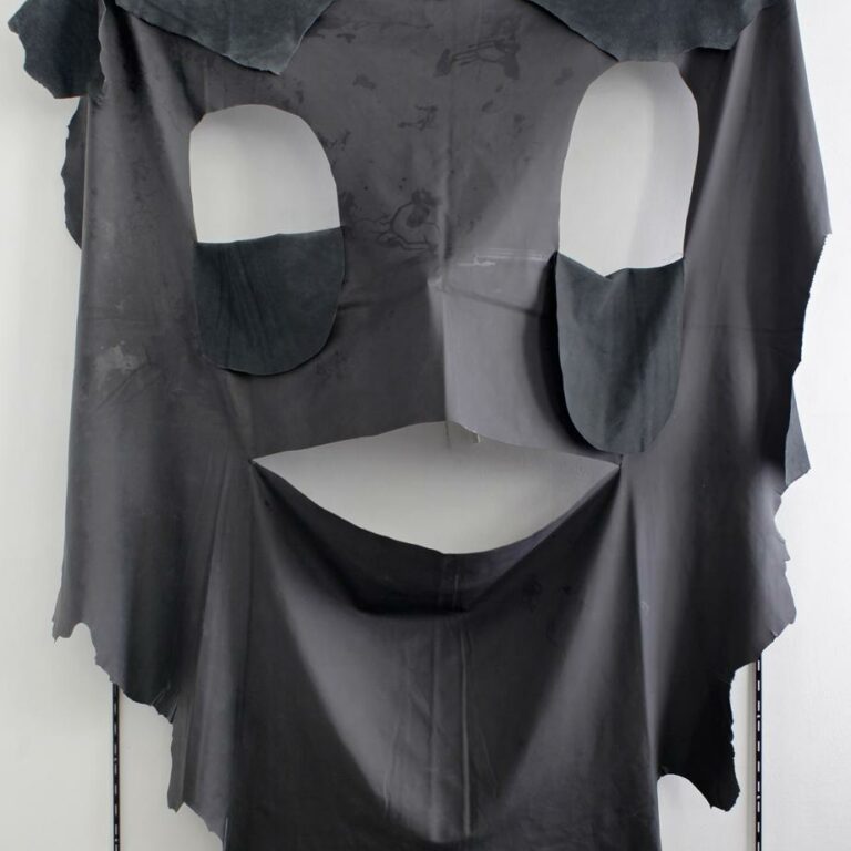 pigeon spikes, metal mesh, leather sewing thread, nails