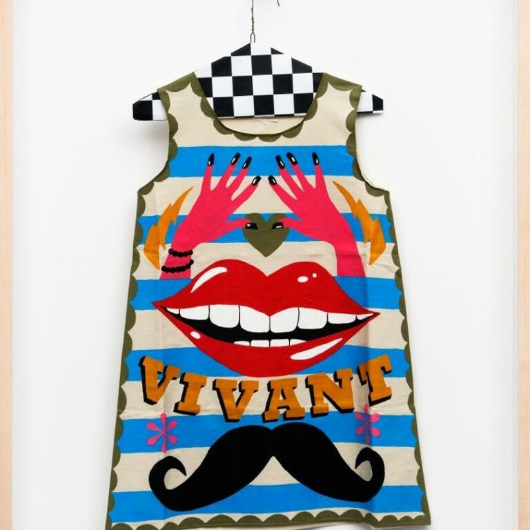 If you look at the dresses they are all incarnations of the words “Bon Vivant””, which translates to one who enjoys the good life. While this association is usually a positive action, I instead subverted the celebratory feel of the words to speak to something more introspective. The Bon Vivant dresses are worn by an anonymous woman who spins around unceremoniously in time to the slow ticking of a clock. She barely moves. Like everyone, she is a prisoner of time. No matter how “”good”” the good life is, we are never really in control of our fate. We can pretend that we have it all figured out, but we as human beings are really just captives of time. With this in mind, there is a lesson. Enjoy every day as if it were our last.”
