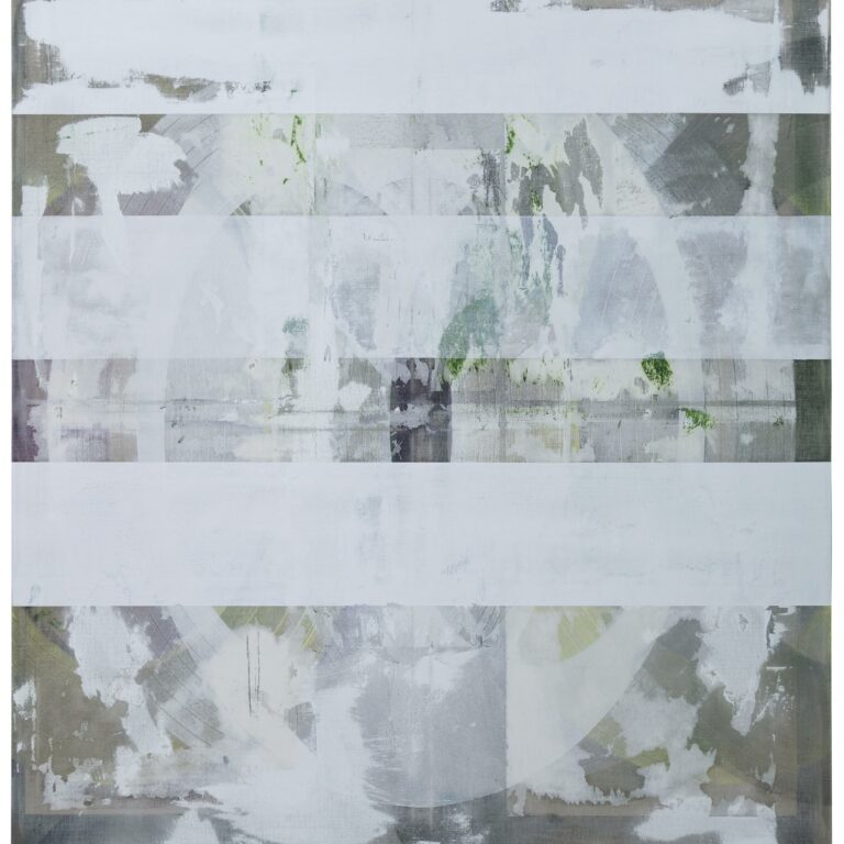 acrylic, enamel, spray paint, indian ink and paper on linen, framed