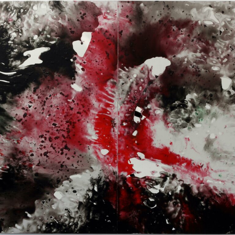 Guache, ashes from burned Brockhaus in 12 volumes from 1953 on canvas