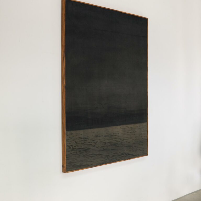 Indigo and charcoal on raw canvas with linen mounted custom Suar wood frame