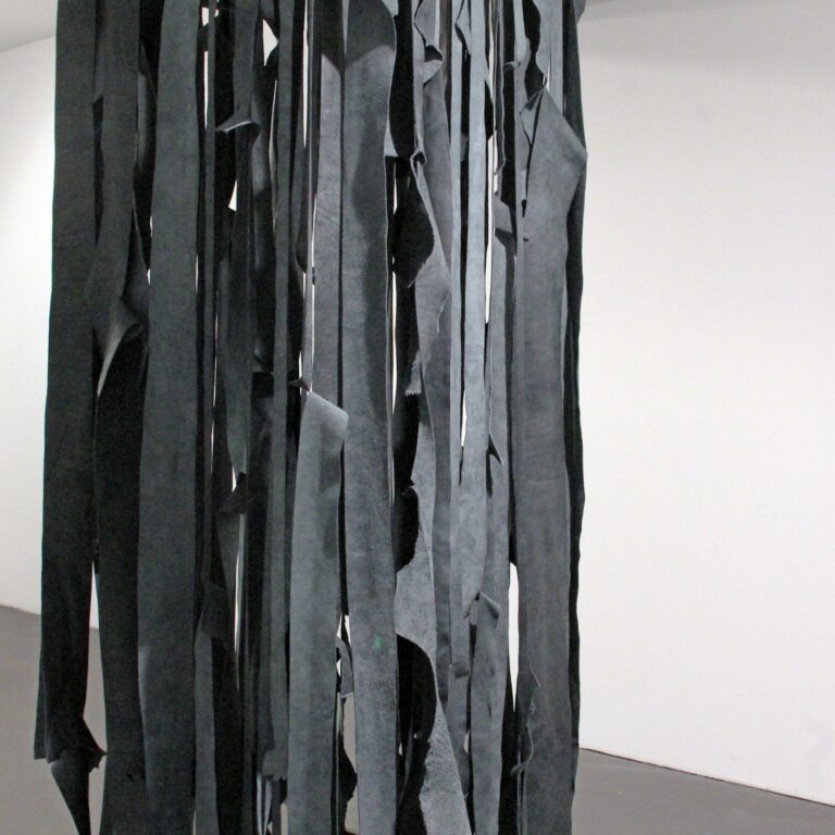 Käfig …. hier habe ich versucht die Säulengröße vom Raum abzunehmen … in Bezug zu bringen …. vielleicht hätte ich ihn dann, von ganz oben von der Decke installieren müssen …. aber ich wollte ihn auch als eigenständiges Objekt …. ich hatte eigentlich die Streifen schon alle vorbereitet … doch im Raum kamen sie mir dann viel zu geordnet und zu schmal vor, sodass ich neue Streifen geschnitten habe …. mit mehr Fläche … und auch die Kreuze aus den Eisen raus …. sodass er offener ist ….