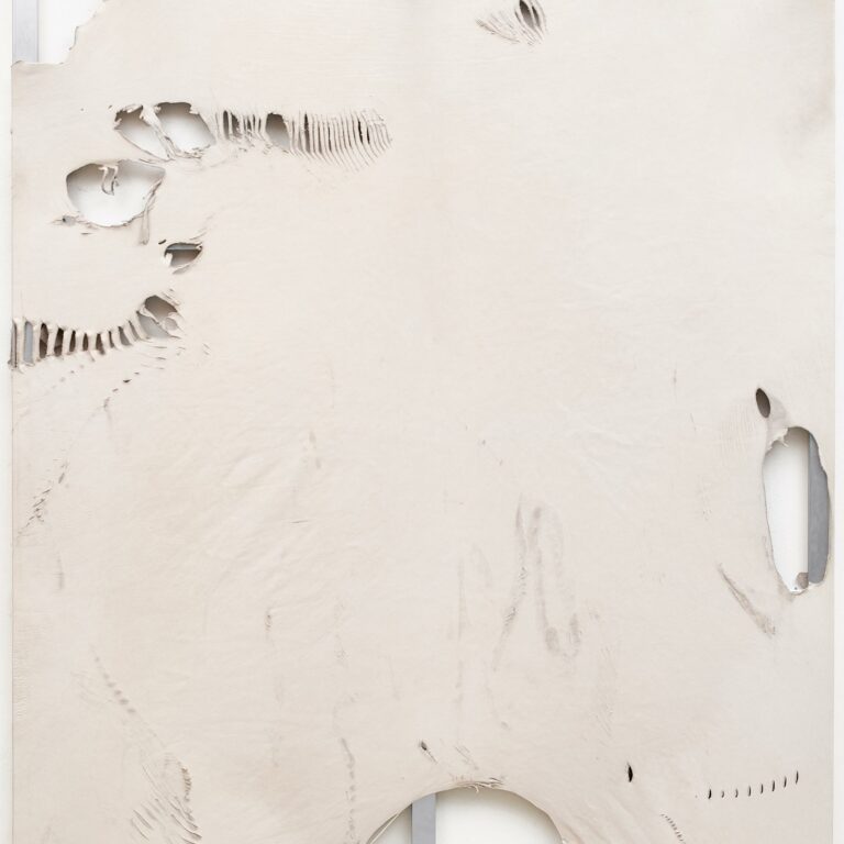 Maximum dunkel/Maximum hell .. hier habe ich die Häute so aufgespannt, dass sie noch gerade plan auf den Keilrahmen sind … teilweise ist wirklich nur 1cm dahinter …. die beiden Häute hatte ich schon Jahre zuhause… Maximum hell habe ich vor ca 5 Jahren auf einem Holzkeilrahmen aufgespannt …. das hat mir aber nicht gefallen bzw. ich finde das war zu organisch dazu … der Metallrahmen bringt für mich nun nocheinmal so einen Gegenpol rein …. mit dem Holzkeilrahmen habe ich sie vorher aber nie gezeigt …. … es ist nicht einfach solche Häute zu bekommen, da so viele Fehler in einer Produktion ja nicht passieren dürften …. eigentlich ist es bei all den extremen Häuten so, dass ich sehr lange suche/finde ….dass das, die Hauptaufgabe ist, da sie ja eigentlich nicht existieren dürften, in einer „normalen“ Produktionskette