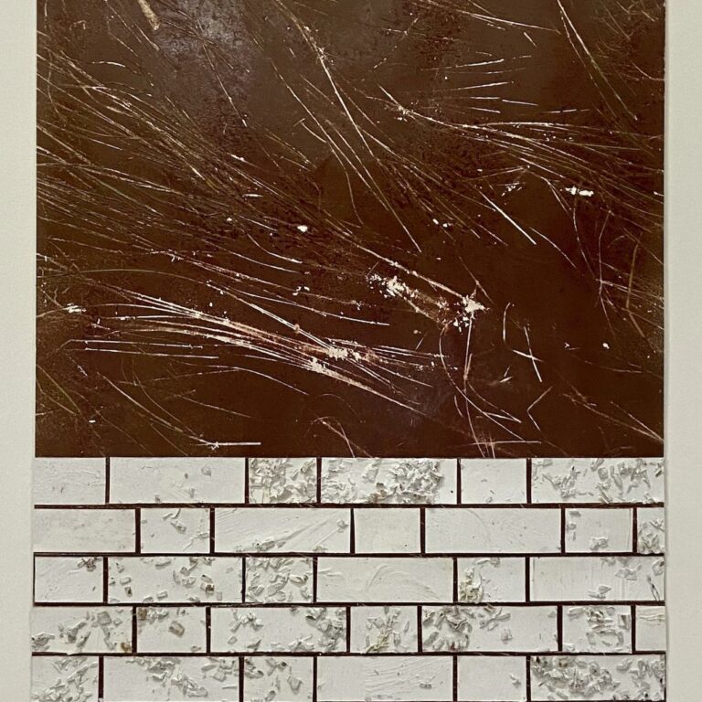 acrylic, enamel, spray paint, indian ink and paper on linen, framed