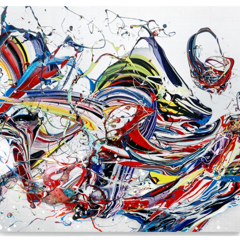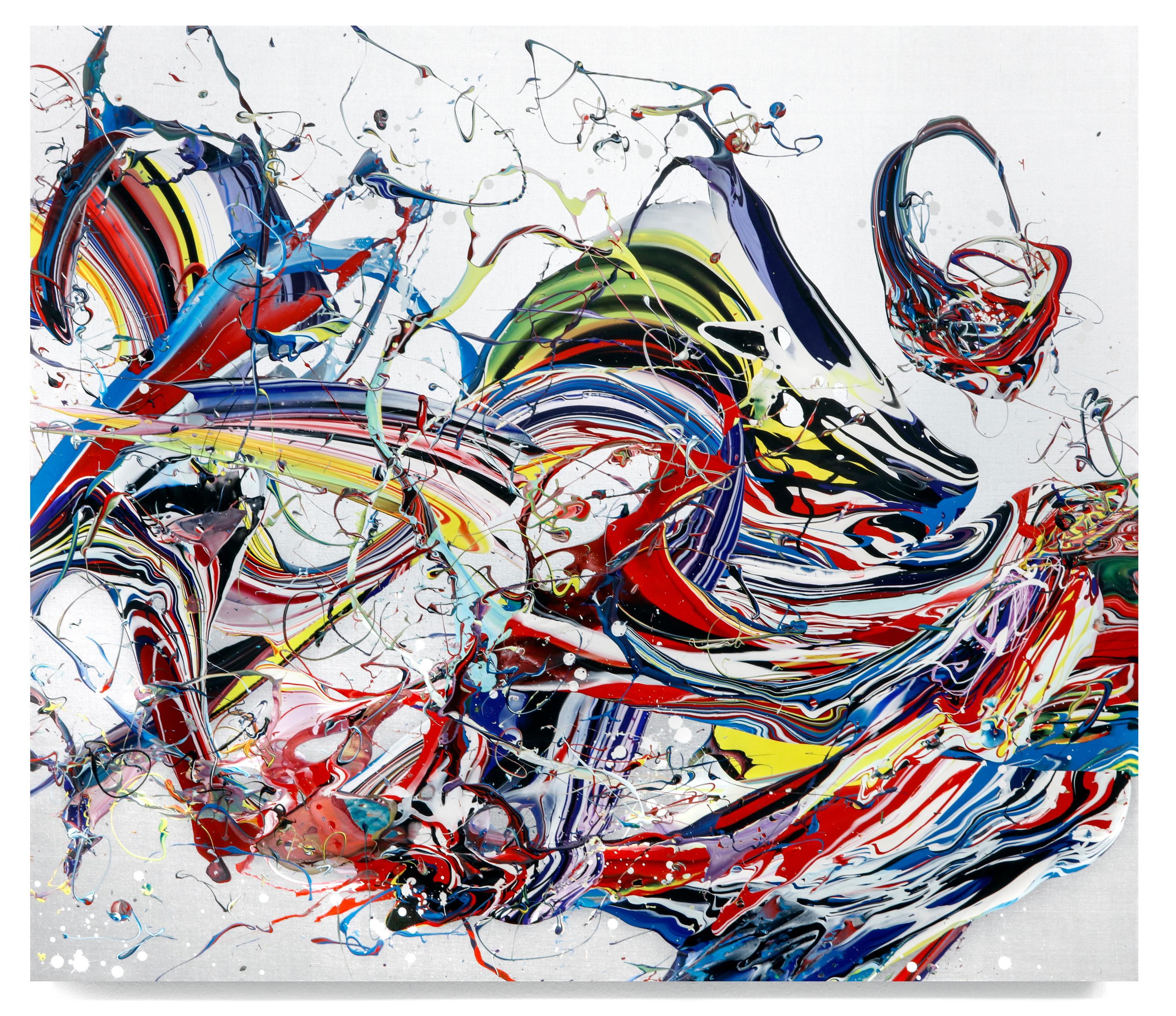 acrylic on reflective paper, framed, museum glass