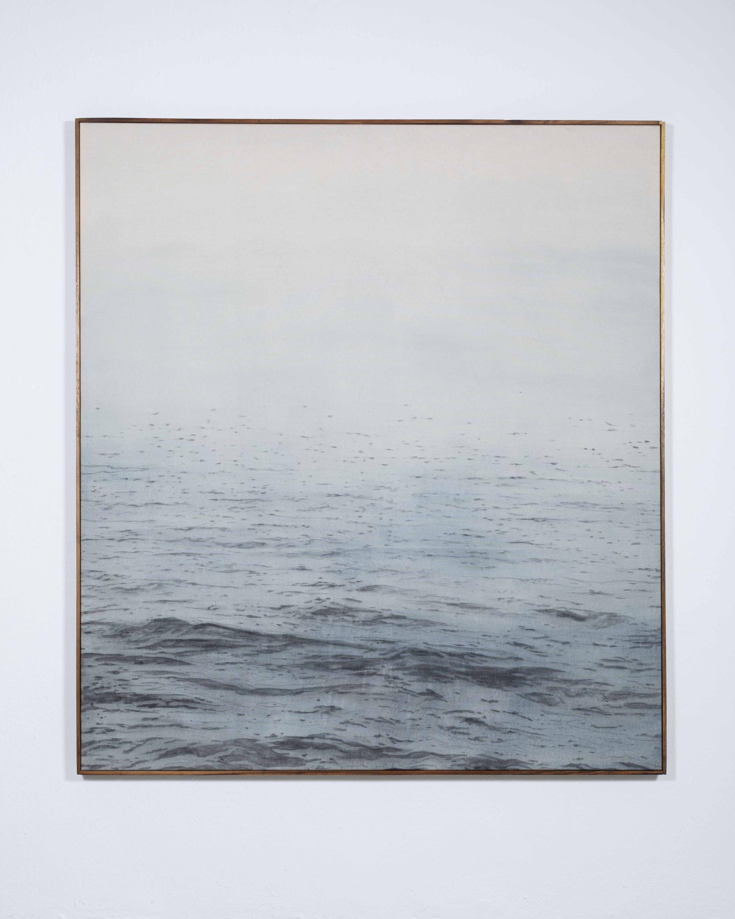 Indigo and charcoal on raw canvas with linen mounted custom Suar wood frame
