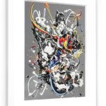330gr. somerset enhanced paper, mixed Screen Print technics, selected high gloss varnish and embossed, framed