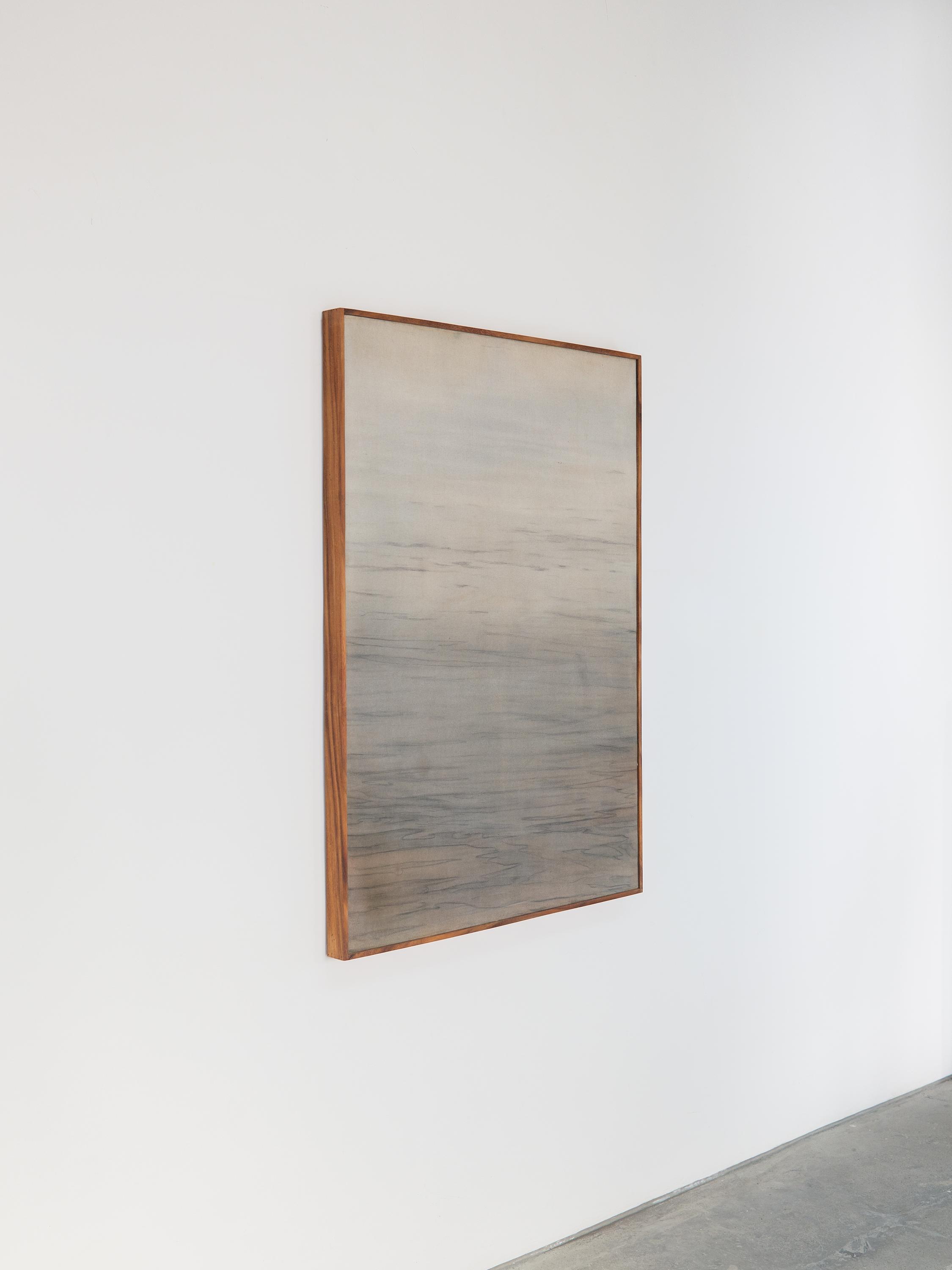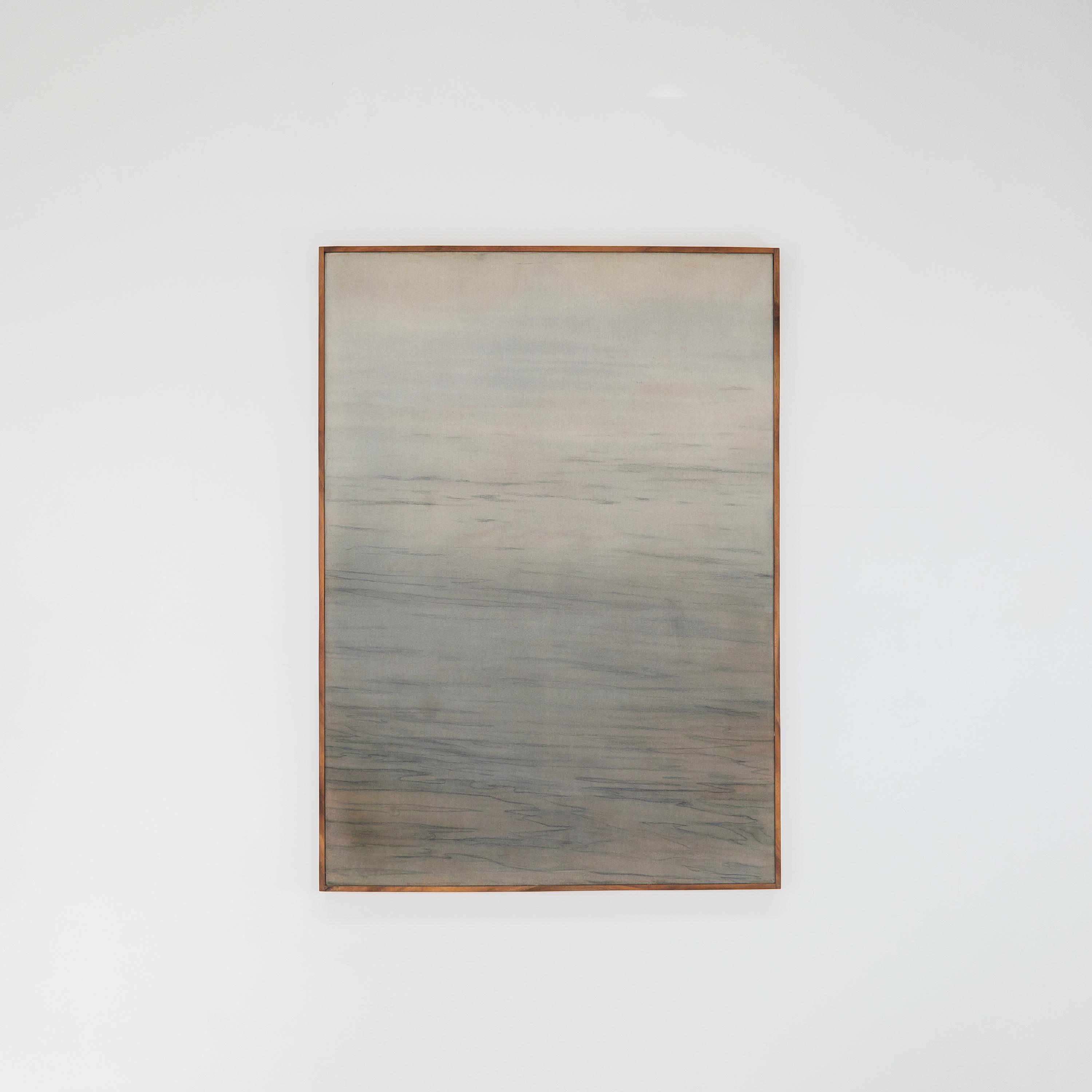 Indigo and charcoal on raw canvas with linen mounted custom Suar wood frame