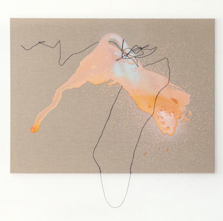 Acryl and ink on linen canvas, embroidery