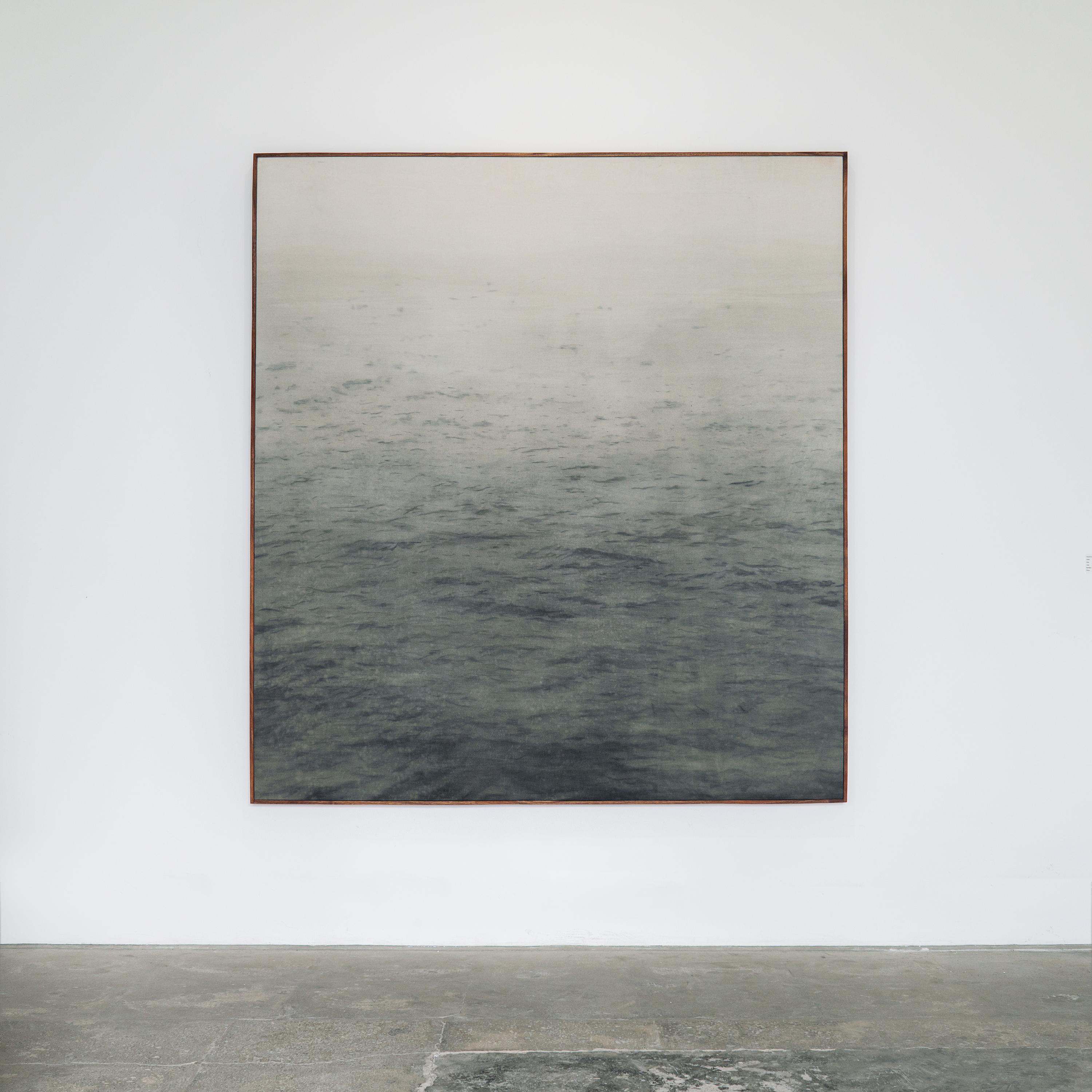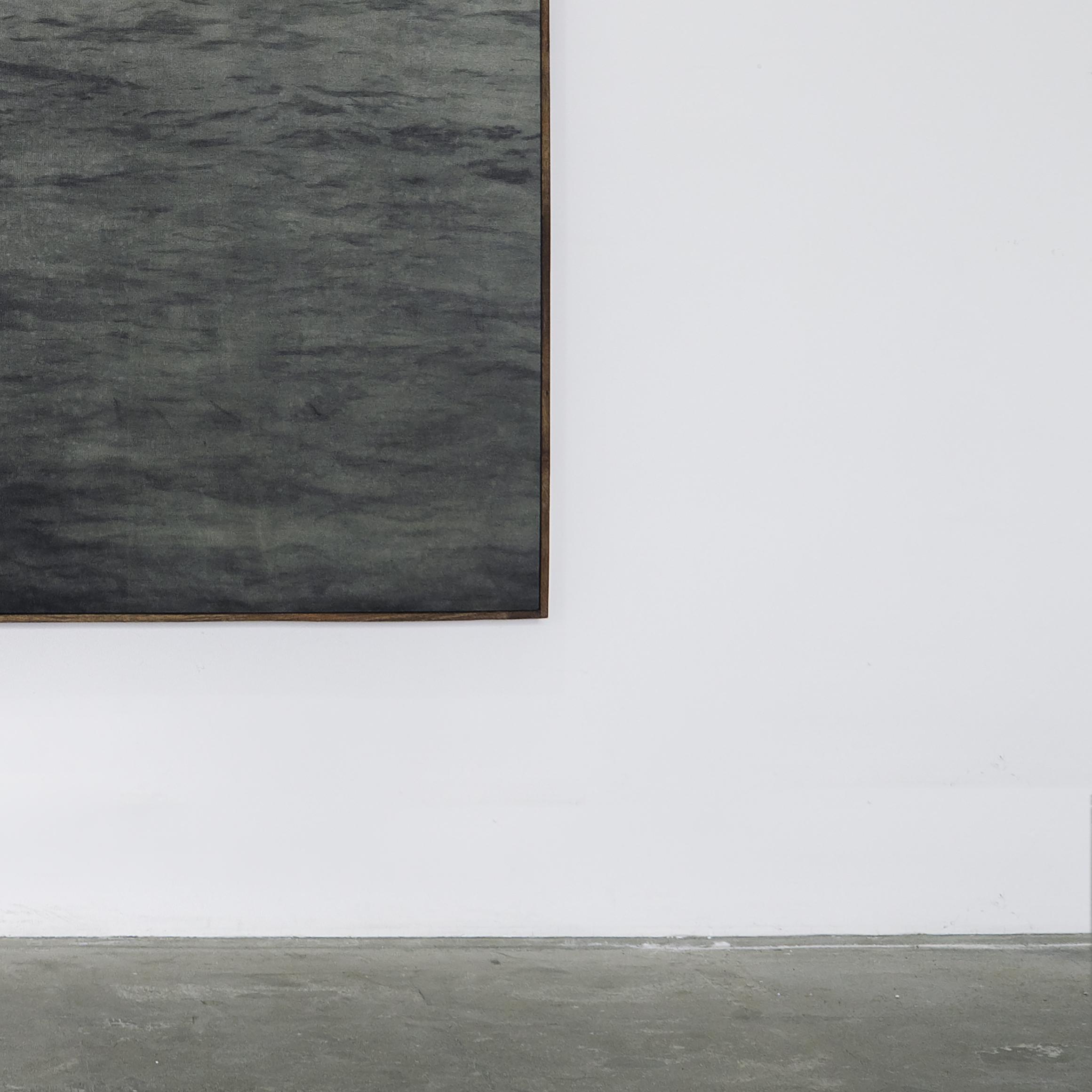 Indigo and charcoal on raw canvas with linen mounted custom Suar wood frame