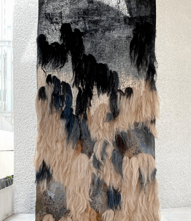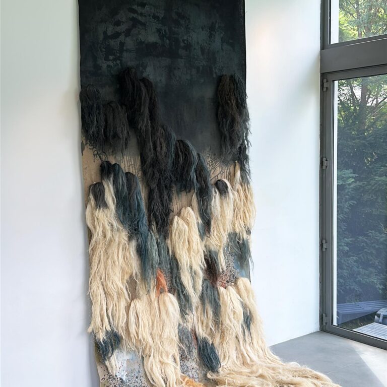 Agave fiber, natural dyes, acrylic, on cotton and jute