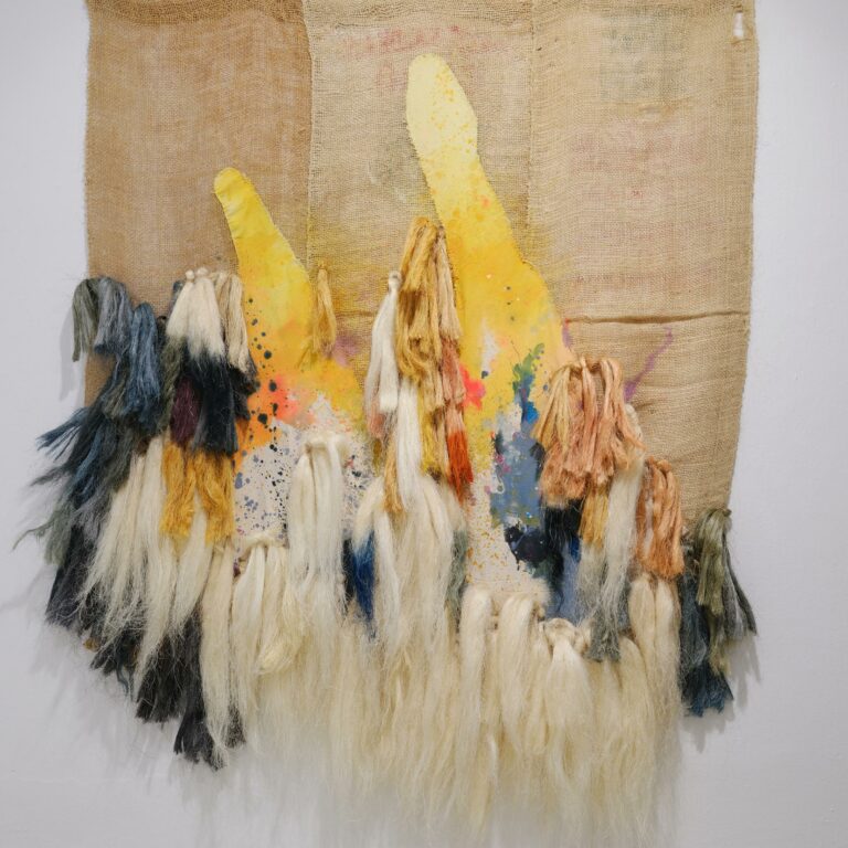 Agave fiber, natural dyes, acrylic, on cotton and jute