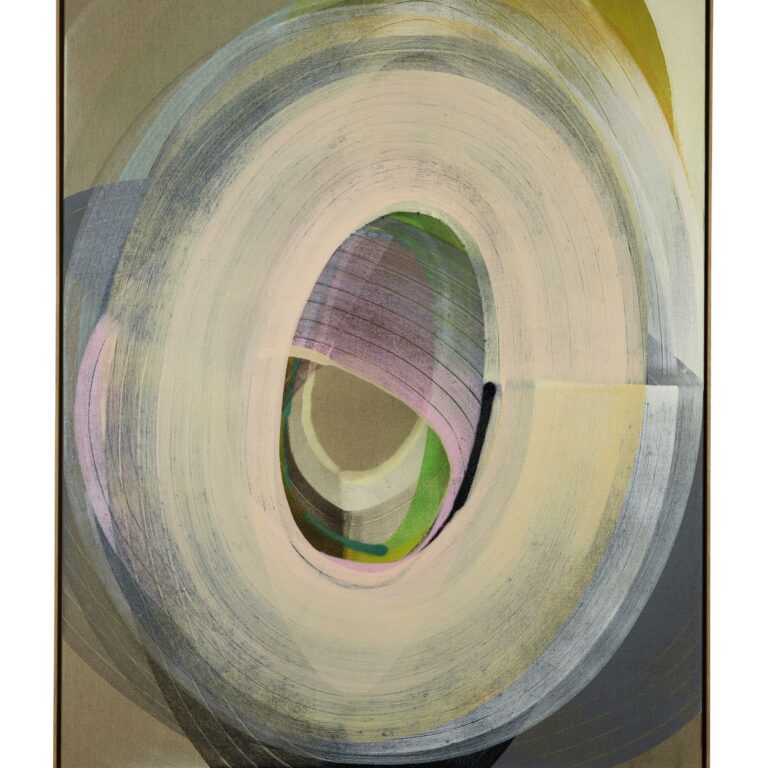 acrylic, enamel, spray paint, indian ink and paper on linen, framed