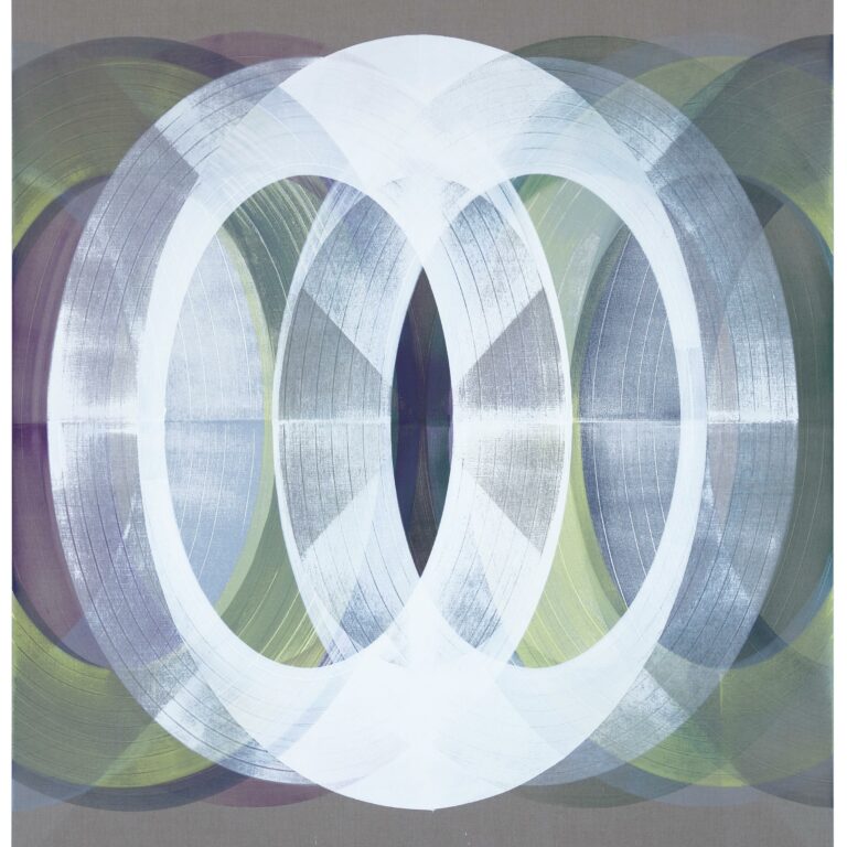 acrylic, enamel, spray paint, indian ink and paper on linen, framed