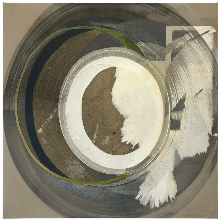 acrylic, enamel, spray paint, indian ink and paper on linen, framed